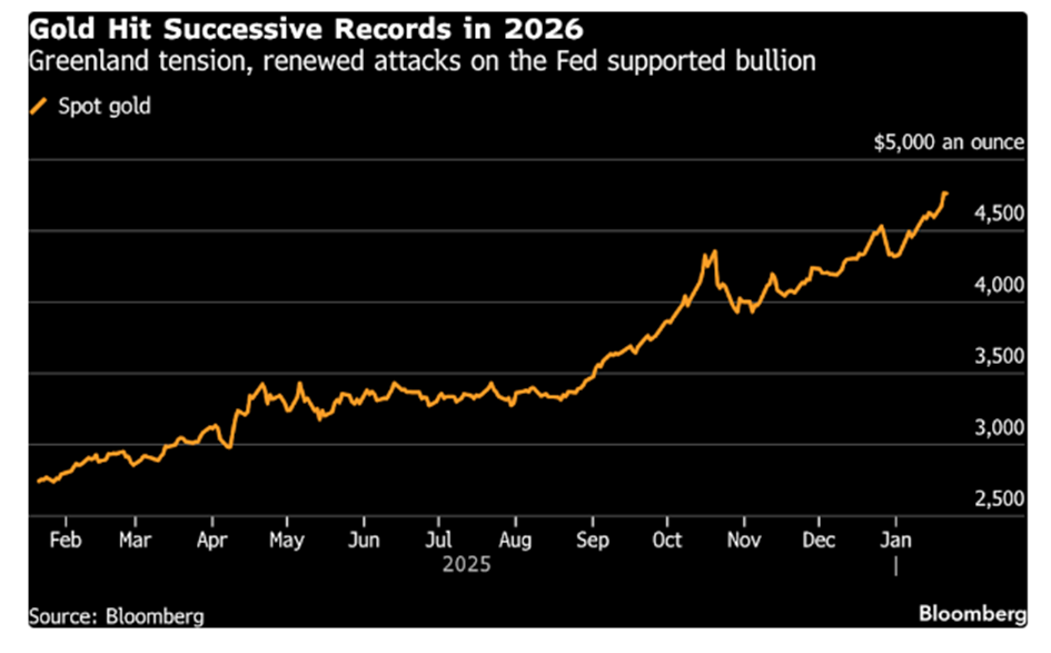 De aandelenmarkten kregen deze week te maken met hogere volatiliteit. Een belangrijk deel daarvan werd gedreven door hernieuwde zorgen over een mogelijke opleving van het handelsconflict van vorig jaar. Stevige uitspraken vanuit Washington zijn we inmiddels gewend, maar de markten schrokken alsnog toen president Trump dreigde met militaire escalatie rond Groenland en met importtarieven tot 200% op Europese (met name Franse) goederen. Daarmee verschoof de aandacht naar zijn toespraak in Davos: zou het bij retoriek blijven, of zouden er concrete maatregelen volgen?