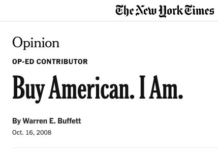 AI can process billions of data points, but it does not possess courage, the characteristic that defines Buffett. He bought when others sold, such as during the credit crisis and the euro crisis. The op-ed below by Buffett in the New York Times, titled "Buy American. I Am." exactly one month after the fall of Lehman Brothers, speaks volumes in that regard.