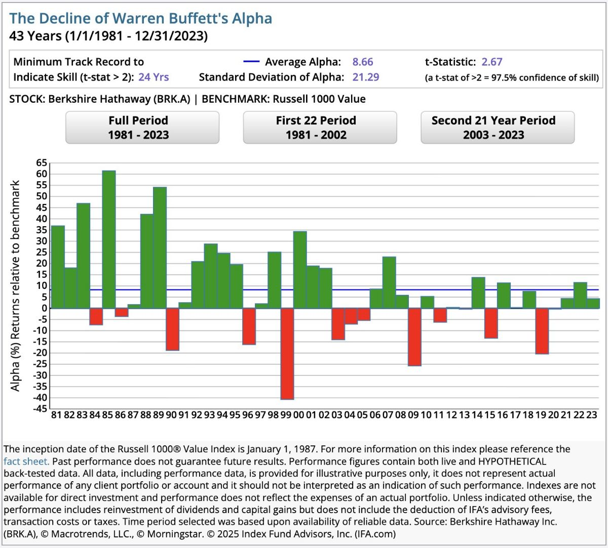 Research by Frazzini, Kabiller & Petersen (2011) shows that Buffett's returns can be partly explained by leverage (insurance float), quality, and valuation, but that his behavior and culture are decisive. His self-control and long-term vision are the true source of his alpha, qualities that, unlike technology, cannot be modeled.