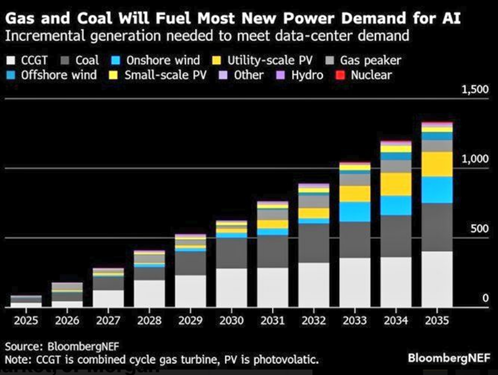 BloombergNEF expects that electricity demand from data centers could increase by a factor of 20 by 2035, a structural shift that further increases the pressure on the energy system.