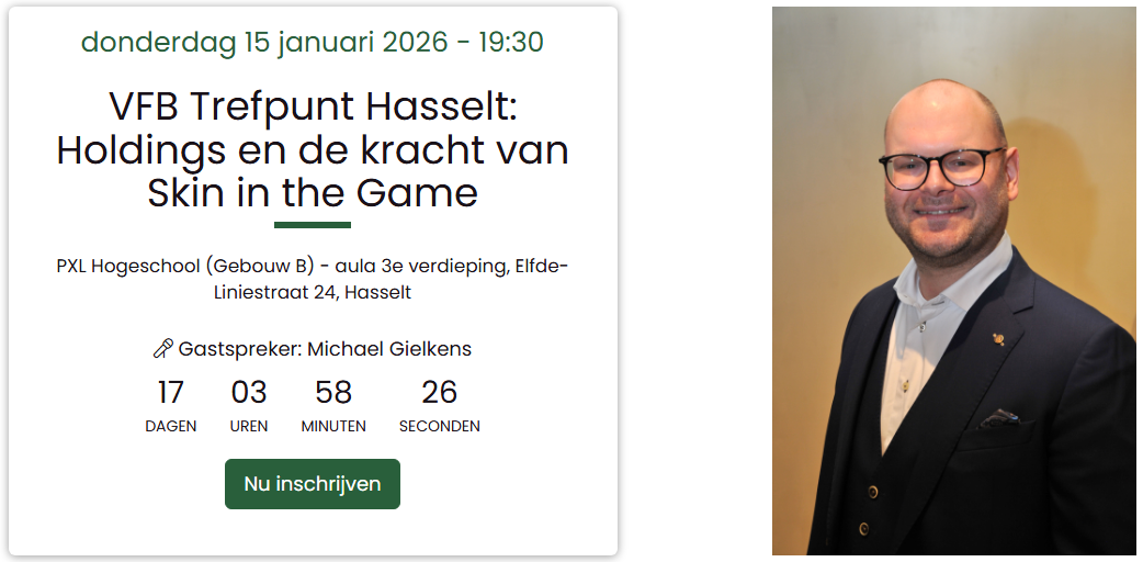 Op donderdag 15 januari 2026 geeft Michael Gielkens, partner en mede-eigenaar van Tresor Capital, een lezing bij VFB Trefpunt Hasselt.