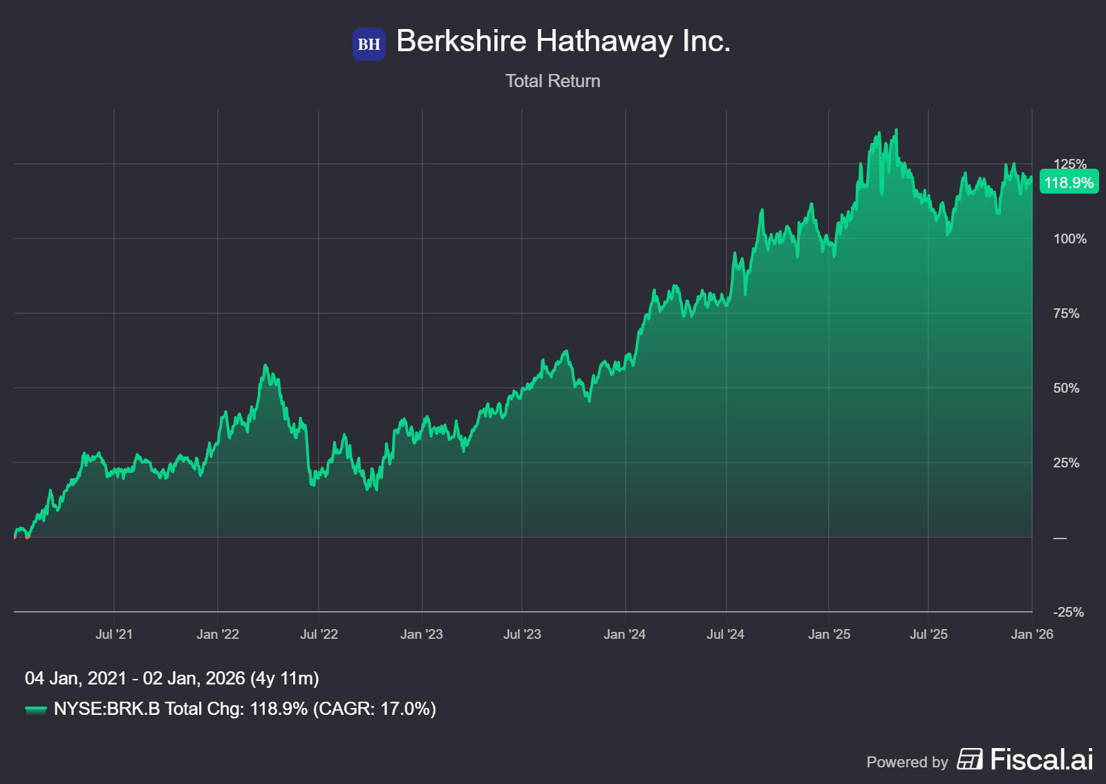 Berkshire Hathaway wordt momenteel aan de beurs van New York verhandeld op een koers van USD 500,26 per B-aandeel.