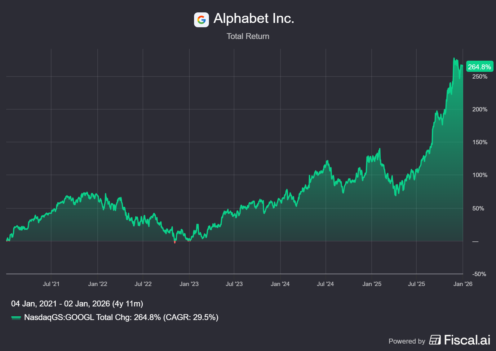 Alphabet wordt momenteel aan de beurs van New York verhandeld op een koers van USD 312,51 per A-aandeel.