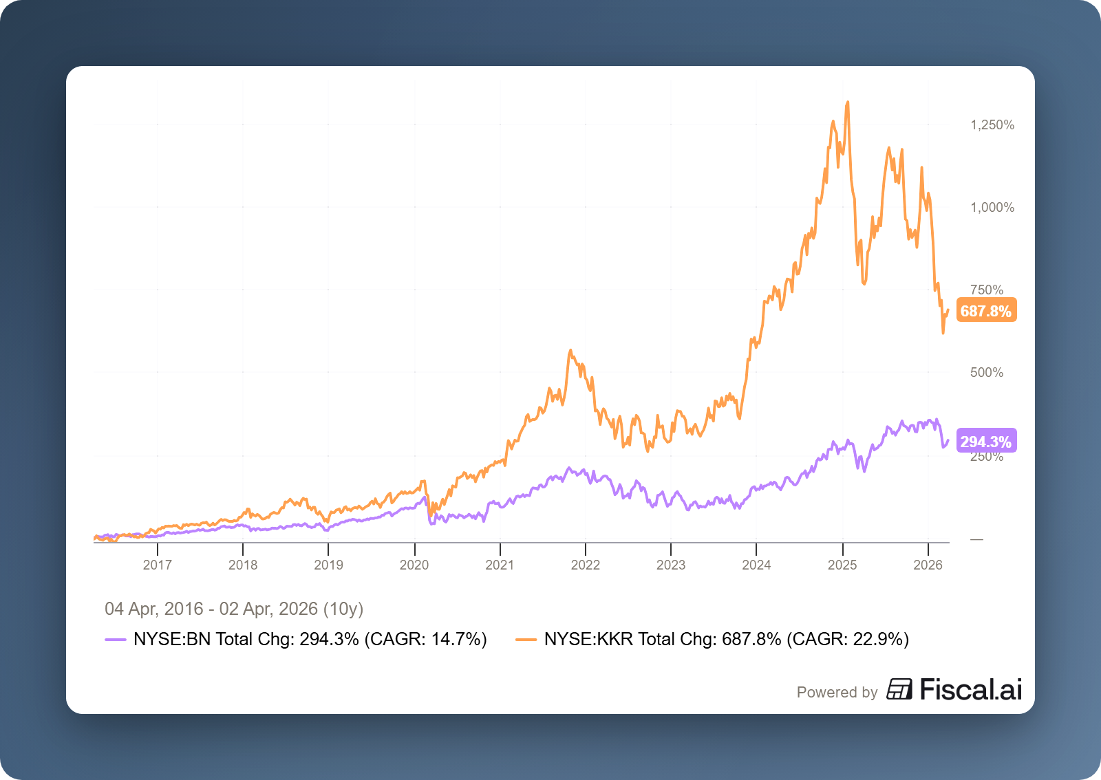 Brookfield en KKR zijn de handelsweek aan de beurs van New York geëindigd op koersen van respectievelijk USD 40,89 en USD 91,23.
