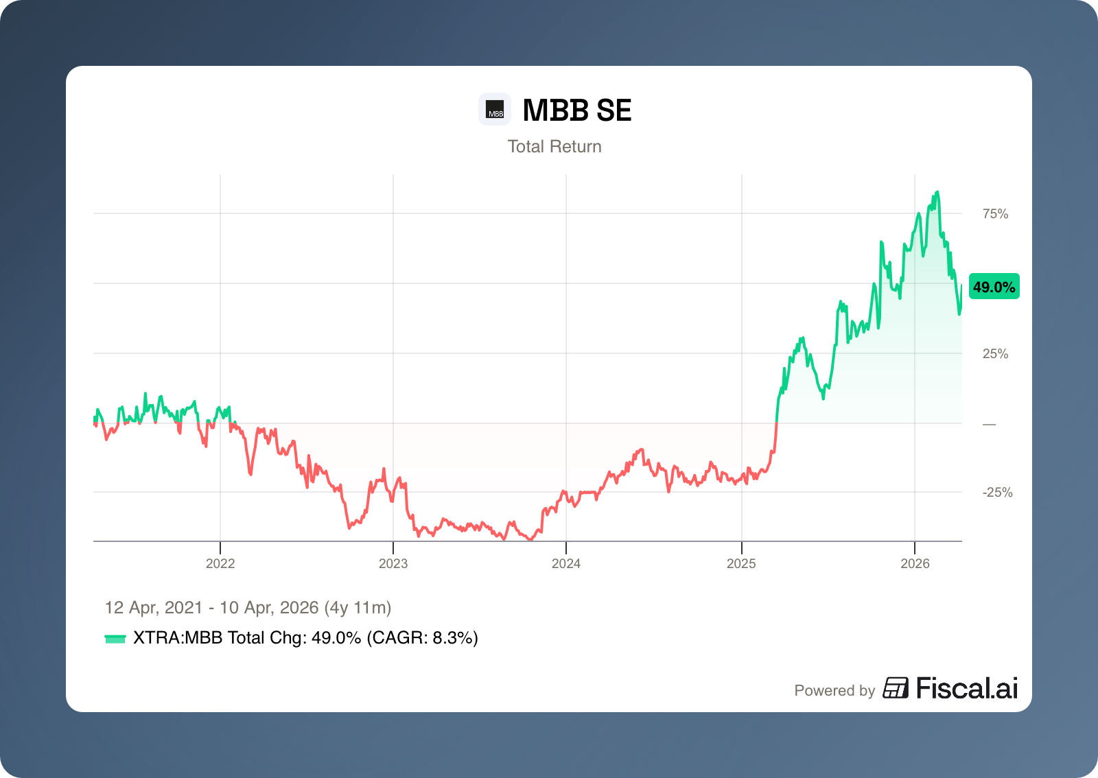 De Duitse investeringsholding MBB (Frankfurt: MBB) boekte in 2025 recordcijfers, zowel op het gebied van de omzet als de operationele winst. We delen in dit artikel de hoogtepunten uit de jaarcijfers die op 30 maart in het jaarverslag werden gepubliceerd.