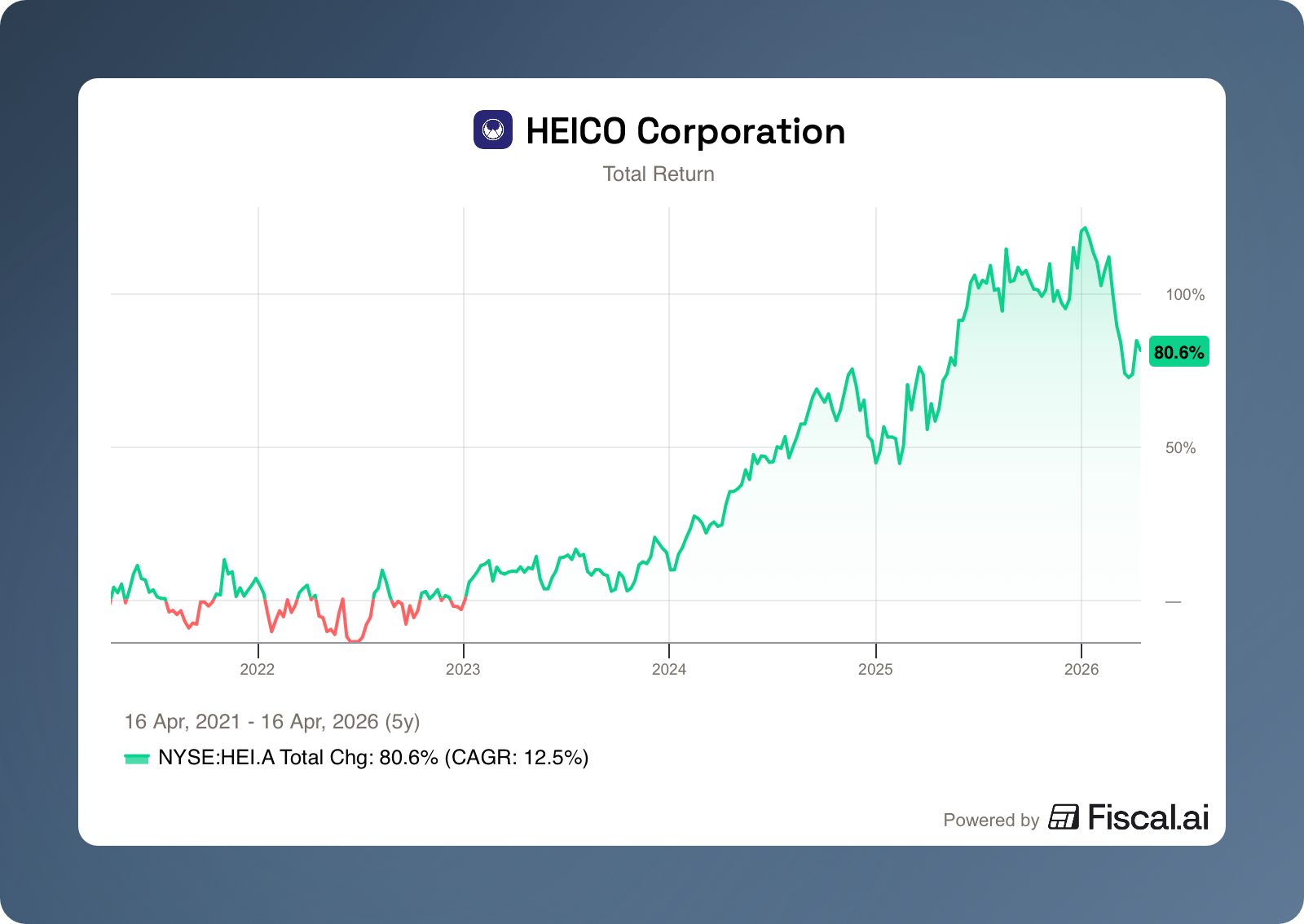 Heico wordt momenteel aan de beurs van New York verhandeld op een koers van USD 222,82 per aandeel.