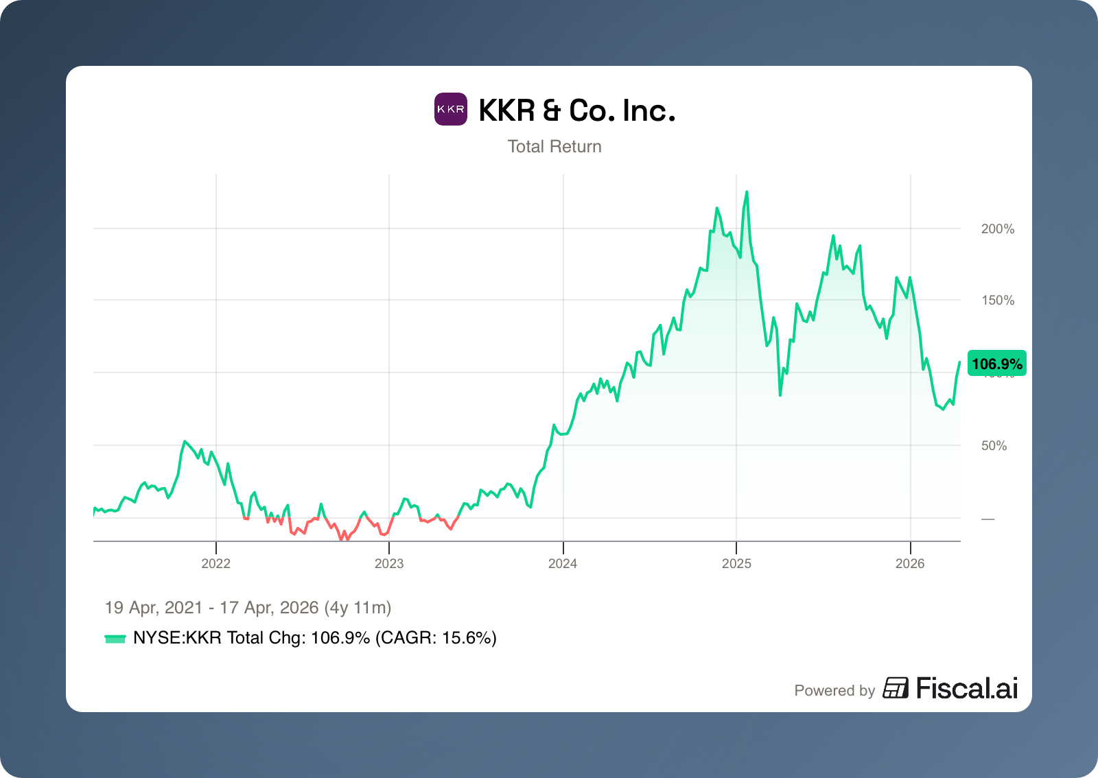 KKR wordt momenteel aan de beurs van New York verhandeld op een koers van USD 105,94 per aandeel.