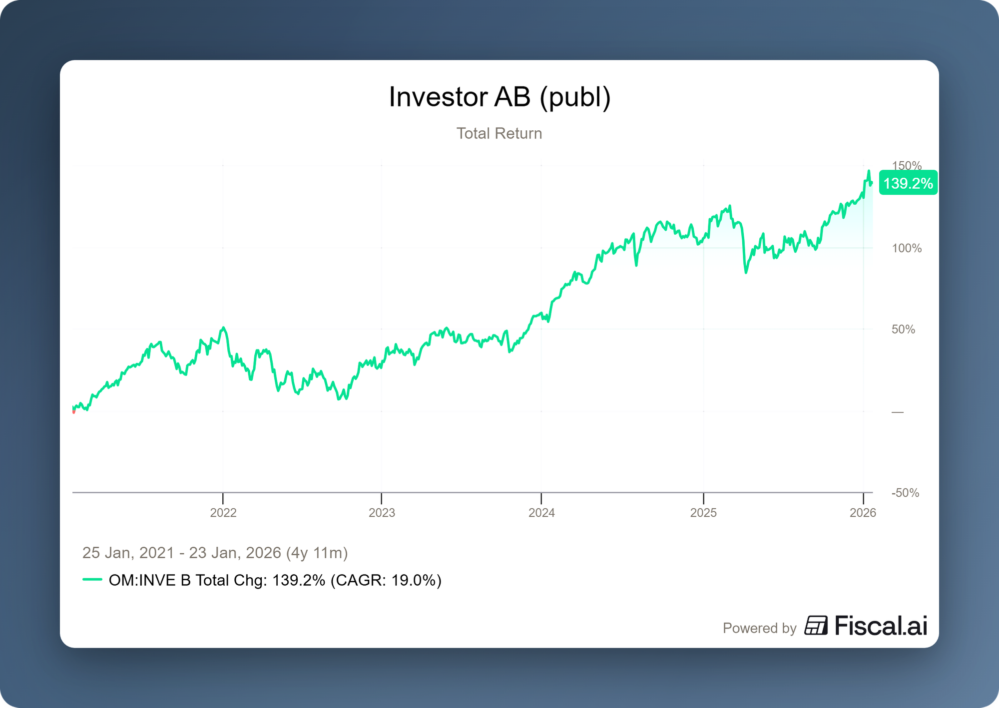 De Zweedse investeringsholding Investor AB (Stockholm: INVE-B) publiceerde afgelopen week de Q4- én jaarcijfers over 2025. In een jaar dat volgens management “anything but straightforward” was, leverde Investor alsnog een sterke totaalprestatie: de NAV steeg met 14% en de Total Shareholder Return kwam uit op 15%. Daarmee heeft het de Zweedse aandelenindex wederom verslagen.