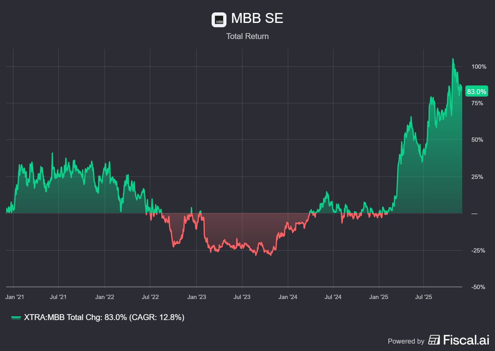 Het management heeft de prognose voor het volledige jaar 2025 verhoogd, en verwacht nu een omzet tussen EUR 1,1 en EUR 1,2 miljard met een operationele winstmarge van 15 tot 17%. Nesemeier stelt dat het aandeel MBB, ondanks de stijging dit jaar, niet duur is.