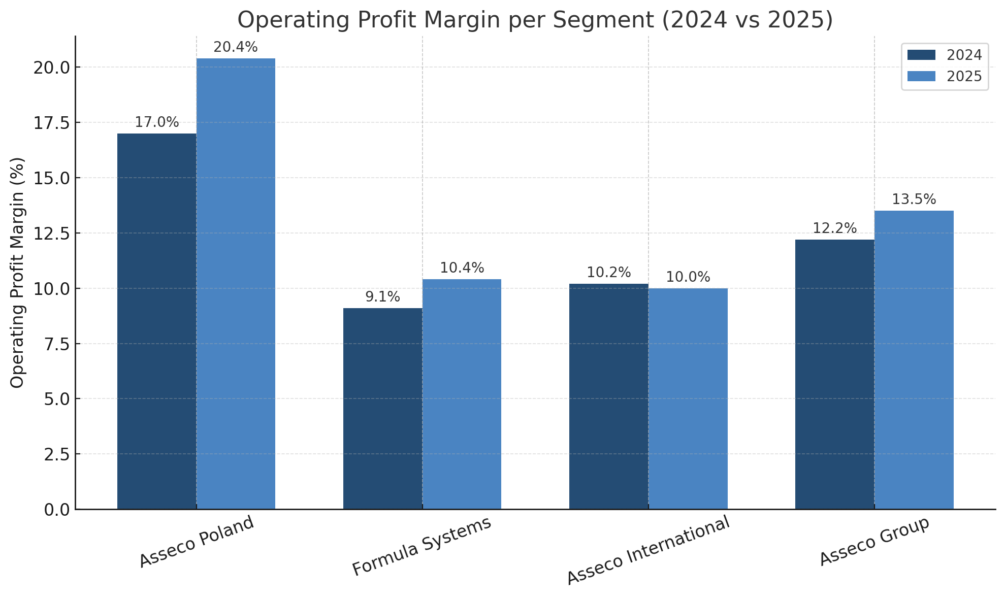 Dat kan meerdere dingen betekenen: meer orders van nieuwe klanten, het succesvol upsellen van aanvullende diensten binnen de bestaande klantbasis, of prijsverhogingen. De order backlog, die met 12% groeide, ondersteunt dit beeld en suggereert dat de vraag naar Asseco’s producten en diensten ook richting de toekomst stevig blijft.
