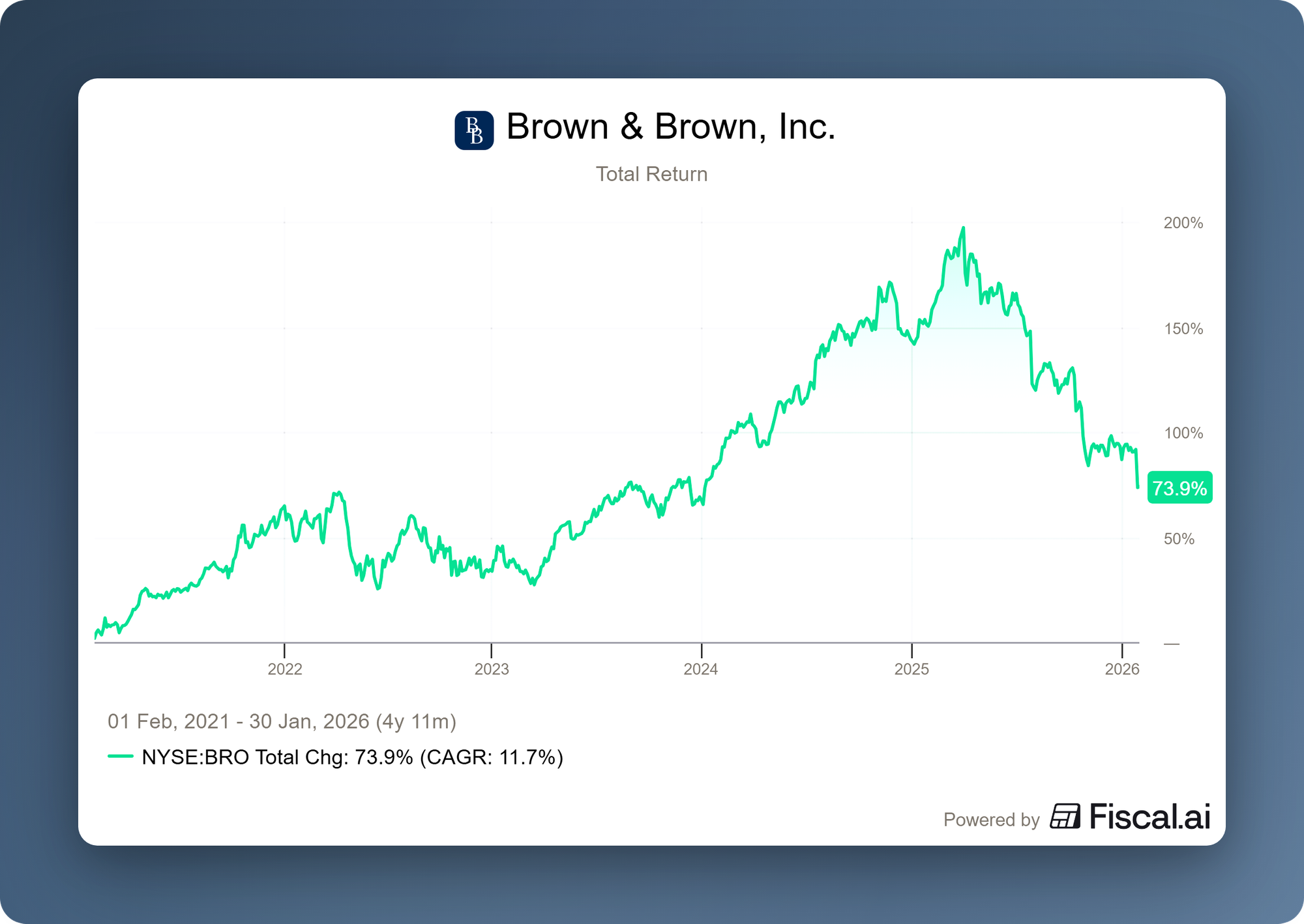 Brown & Brown wordt momenteel aan de beurs van New York verhandeld op een koers van USD 72,28 per aandeel.