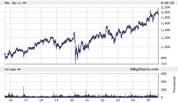 Markel wordt momenteel aan de beurs van New York verhandeld op een koers van USD 1.916,90 per aandeel.