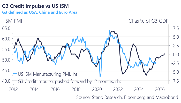 De credit impulse, begin jaren 2000 geïntroduceerd door economen Patrick Arthus (Natixis) en Michael Biggs (destijds Deutsche Bank), geldt als een belangrijke leading indicator voor zowel economische groei als kapitaalmarkten. Arthus liet zien dat telkens wanneer China de kredietkraan openzette om de economie te stimuleren, in de maanden daarna wereldwijde aandelen sterk presteerden.