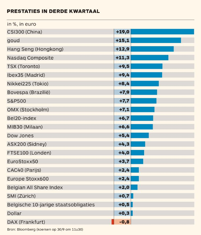 Het derde kwartaal werd gekenmerkt door uitgesproken verschillen tussen regio’s en sectoren. De sterkste prestaties kwamen uit Azië, met name de beurzen in Taiwan en China (voor de technologiebedrijven) lieten een krachtig herstel zien. Chinese ondernemingen brachten nieuwe AI-modellen en interne chipoplossingen naar voren, waarmee zij hun technologische onafhankelijkheid versterken en hun groeipotentieel vergroten. Ook het vertrouwen van de Chinese consument om (weer) te beleggen op de eigen beurs nam duidelijk toe.