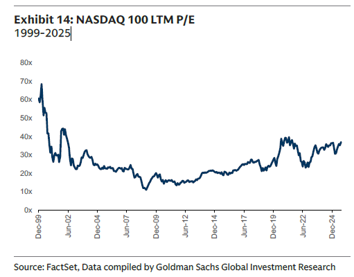 Toch zijn er belangrijke verschillen met de dotcombubbel van eind jaren ’90. De bovenstaande grafiek van Goldman Sachs laat zien dat waarderingen vandaag veel gezonder zijn: rond 37x winst, tegenover 68x op het hoogtepunt in 1999. Bovendien genereren bedrijven als Microsoft, Nvidia en Alphabet forse vrije kasstromen, iets wat destijds uitzonderlijk was. De markt voor beursgangen is ook volwassen geworden: minder, maar winstgevendere IPO’s, en ondernemingen blijven langer privé gefinancierd. In macro-opzicht is de rente met circa 4,3 procent lager dan de 6 procent van toen, terwijl de Fed vermoedelijk richting versoepeling beweegt.
