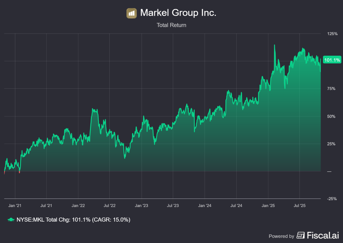 Tegelijk blijft Markel trouw aan zijn kapitaalefficiënte model, waarbij aandeleninkoop een centrale rol speelt in de waardecreatie voor aandeelhouders. In 2025 werden tot dusver voor $344 miljoen aan eigen aandelen teruggekocht, waardoor het aantal uitstaande aandelen daalde tot 12,6 miljoen. Gayner gaf aan dat het volgende reductiedoel van 10% mogelijk al binnen drie tot vijf jaar wordt bereikt, gesteund door de aanhoudend sterke operationele kasstromen. Sinds 2020 is de totale aandelenbasis daarmee al met bijna 9% verkleind, een duidelijke illustratie van Markel’s consistente en aandeelhoudersgerichte kapitaalstrategie.