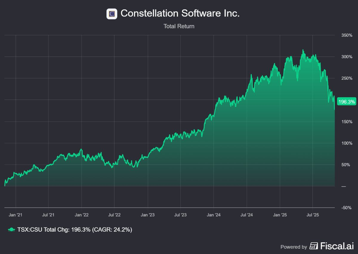 De Canadese investeringsholding Constellation Software (Toronto: CSU) is een toonaangevende speler in deze sector, met een indrukwekkende portefeuille van meer dan 1.000 bedrijven. In een analistenbijeenkomst in januari van dit jaar benadrukte Constellation dat hun software moeilijk te vervangen is door AI, aangezien deze diep is verankerd in de dagelijkse, bedrijfskritische functies van eindklanten, complex is en gepaard gaat met hoge overstapkosten.