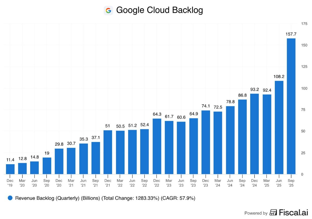 Een van de meest opvallende cijfers van het kwartaal is de explosieve groei van de cloud-backlog, het totaal aan ondertekende maar nog niet uitgevoerde contracten. Die steeg in slechts drie maanden tijd van $108 naar $157,7 miljard, een toename van bijna $50 miljard of 46% kwartaal-op-kwartaal. Het is het hoogste niveau ooit en een duidelijke aanwijzing dat de vraag naar Google’s cloudcapaciteit de komende jaren robuust zal blijven.
